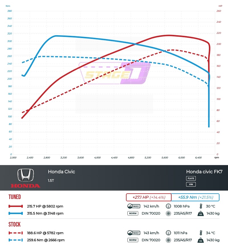 Projects StageD Projects STAGE D Honda Civic Fk7 1.5T Ecu Tuning Stock: 188Hp / 260Nm Stage 1: 216Hp / 316NmFuel economy: 5-10% VW Golf Mk6 1.6 TDi Ecu Tuning Stock: 109Hp / 249Nm Stage 1: 146Hp / 290NmFuel economy: 10-15% Kia Rio 1.1 CRDi Ecu Tuning Stock: 78Hp / 171Nm Stage 1: 94Hp / 207NmFuel economy: 10-15% VW Polo 1.2 TDi Ecu Tuning Stock: 75Hp / 180Nm Stage 1: 100Hp / 220NmFuel economy: 10-15% Dacia Sandero 1.5 dCi Ecu Tuning Stock: 90Hp / 220Nm Stage 1: 120Hp / 290NmFuel economy: 10-15% Suzuki Swift 1.0T Ecu Tuning Stock: 105Hp / 157Nm Stage 1: 124Hp / 205NmFuel economy: 5-10% Renault Captur 1.5 dci Ecu Tuning Stock: 86Hp / 191Nm Stage 1: 108Hp / 247NmFuel economy: 10-15% VW Golf V 1.4 TSi Ecu Tuning Stock: 140Hp / 220Nm Stage 2: 222Hp / 325Nm Bmw 523i E60 Ecu Tuning Stock: 168Hp / 220Nm Stage 1: 184Hp / 240NmFuel economy: 5-10% Audi TT 1.8T QUATTRO Ecu Tuning Stock: 225Hp / 280Nm Stage 1+: 252Hp / 380Nm VW Golf Mk7 1.6 Tdi Ecu Tuning Stock: 104Hp / 225Nm Stage 1: 132Hp / 282NmFuel economy: 10-15% Nissan X-Trail 1.6 dCi Ecu Tuning Stock: 130Hp / 320Nm Stage 1: 155Hp / 370NmFuel economy: 10-15% Peugeot 208 1.6BlueHdi Ecu Tuning Stock: 97Hp / 250Nm Stage 1: 127Hp / 290NmFuel economy: 10-15% Mercedes A200 1.6T ✅ Ecu Tuning📈 Stock: 156Hp / 230Nm (measured 143Hp)📈 Stage 2: 183Hp / 327Nm Dacia Duster 1.5 dci ✅ Ecu Tuning📈 Stock: 104Hp / 249Nm📈 Stage 1: 124Hp / 305NmFuel economy: 10-15% Peugeot 3008 1.5 BlueHdi ✅ Ecu Tuning🌿 AdBlue solution📈 Stock: 130Hp / 300Nm📈 Stage 1: 161Hp / 354NmFuel economy: 10-15% Renault Clio 1.5 dci ✅ Ecu Tuning📈 Stock: 90Hp / 220Nm📈 Stage 1: 115Hp / 260NmFuel economy: 10-15% Alfa Romeo Mito 1.4 Tjet ✅ Ecu Tuning📈Stock: 155hp 240Nm📈Stage 2: 190hp 300Nm Opel Astra G 1.4 light turbo ⚙️ Stock Engine➡️ K04-015 Turbo➡️ S3 injectors✅ Ecumaster Det3 ecu📈Stock: 90Hp / 125Nm📈Tuned: 140Hp / 182Nm Seat Ibiza 1.6 Tdi ✅ Ecu Tuning📈 Stock: 90Hp / 230Nm📈 Stage 1: 135Hp / 285NmFuel economy: 10-15% Audi A3 8V 1.5 TFSi ✅ Ecu Tuning📈 Stock: 150Hp / 250Nm📈 Stage 1: 182Hp / 305Nm Volkswagen Polo 1.8 Gti ✅ Stage 3💨 IS38 turbo⚙️ Full exhaust⚙️ Intake⚙️ Intercooler📈 Stock: 192Hp / 320Nm📈 Tuned: 359Hp / 451Nm Opel Astra Gtc 1.6T ✅ Ecu Tuning⚠️ Special features:💥 Pop&Bangs📈 Stock: 180Hp / 230Nm📈 Stage 1: 212Hp / 300Nm Honda Civic D16 Turbo ⚙️ Stock motor✅ Doctronic Ecu📈 Stock: 110hp / 152Nm📈 Tuned: 182hp / 259Nm Volkswagen Bora 20VT ✅ ECU Tuning⚠️ Special features:🚀 Launch control⚙️ Hard cut💥 Pop & Bangs⚪️ Mafless⚪️ Full Exhaust⚪️ S3 injectors⚪️ 4bar fpr⚪️ Boost controller⬇️ Tuning Result ⬇️📈Stock: 180hp / 235Nm📈Tuned: 235hp / 370Nm Dacia Duster 2019 1.5 dci ✅ ECU Tuning📈 Stock: 117hp / 240Nm📈Stage 1: 142hp / 310NmFuel economy: 10-15% Opel Insignia 1.4 Turbo ✅ ECU Tuning📈 Stock: 140hp / 200Nm📈Stage 1: 170hp / 270NmFuel economy: 5-10% Jeep Renegade 1.4 Multiair ✅Ecu Tuning📈Stock: 170hp/ 250Nm📈Stage 1: 189hp/ 295NmFuel economy: 5-10% Mercedes C250 CGI Stage 2+ Stock: 204hp 309NmTuned: ❌❌❌Special features: Pop&bangs💥 Opel Astra H Z16LET ✅ ECU Tuning🚀 Stage 2+🔨 Forged engine💉Bigger injectors💨 FMIC Opel Astra K 1.6 CDTi ✅ ECU Tuning📈 Stock: 110hp / 300Nm📈 Stage 1: 142hp / 360NmFuel economy: 10-15% Audi Q5 FY 2.0 Tdi ✅ ECU Tuning📈 Stock: 187hp / 380Nm📈 Stage 1: 220hp / 450NmFuel economy: 10-15% Citroen C5 Aircross 1.5 BlueHDi 2020 ✅ ECU Tuning📈 Stock: 130hp / 300Nm📈 Stage 1: 160hp / 360Nm VW Golf MK7 1.2 TSi ✅ ECU Tuning📈 Stock: 86hp / 160Nm📈 Stage 1: 121hp / 229NmFuel economy: 10% Seat Ibiza FR 20VT ✅ ECU Tuning⚠️ Special features:🚀 Launch control⚙️ Flat shift💥 Hard cut⚪️ K04 Hybrid⚪️ Maf 80mm⚪️ 70mm Exhaust⚪️ 550cc injectors⚪️ 4bar fpr⚪️ Boost controller⬇️ Tuning Result ⬇️📈Stock: 150hp / 220Nm📈Tuned: 305hp / 377Nm BMW 320i e90 ✅ ECU Tuning📈 Stock: 150hp / 200Nm📈 Stage 1: 175hp / 215Nm VW Scirocco 1.4 TSi ✅ ECU Tuning📈 Stock: 160hp / 240Nm📈 Stage 2: 215hp / 295Nm Opel Adam 1.4 ecoFlex ✅ ECU Tuning📈 Stock: 87 hp / 130Nm📈 Stage 1: 98hp / 146NmFuel economy: 5-10% Peugeot 208 1.6 BlueHDi ✅ ECU Tuning📈 Stock: 75hp / 230Nm📈 Stage 1: 120hp / 280NmFuel economy: 10-15% Abarth 595 Turismo ✅ ECU Tuning📈 Stock: 165hp / 230Nm📈 Stage 1: 200hp / 295Nm Fiat Punto Evo 1.3 JTD ✅ ECU Tuning📈 Stock: 75hp / 190Nm📈 Stage 1: 98hp / 240Nm Skoda Octavia RS ✅ ECU Tuning✅ Stage 2 Opel Corsa E 1.3 Cdti ✅ ECU TuningFuel economy: 10-15% BMW 320 E93 ✅ ECU Tuning📈Stock: 170hp / 210Nm📈Stage 1: 185hp / 230Nm Fiat Panda 1.3 JTD 4x4 ✅ ECU Tuning✅ EGR Solution📈Stock: 70hp / 145Nm📈Stage 1: 90hp / 185Nm Renault Clio 1.5 dci 2018 ✅ ECU Tuning📈 Stock: 75hp / 200Nm📈 Stage 1: 110hp / 265Nm VW Scirocco 1.4 TSi ✅ ECU Tuning📈Stock: 160hp / 240Nm📈Stage 2: 216hp / 300Nm Mercedes GLA 180d ✅ ECU Tuning📈 Stock: 109 hp / 260 Nm📈 Stage 1: 136 hp / 309 Nm Skoda Citigo 1.0 Mpi G-Tec 📉Stock: 68hp 90Nm📈Stage 1: 80hp 100Nm BMW X6 35d ✅ ECU Tuning📈 Stock: 286hp – 580Nm📈 Stage 1: 348hp – 687Nm VW Passat B7 2.0 Tdi 📈 Stock: 140hp 320Nm📈 Stage 1: 185hp 405Nm♻️ DPF-EGR Solution✔️ Alfa Romeo Mito 1.4 Tjet 📈Stock: 155hp 240Nm📈Stage 2: 190hp 300Nm Audi A3 8V 2017 1.6 tdi 📈Stock: 116hp 250Nm📈Stage 1: 150hp 330Nm♻️Fuel economy: 10-15% Citroen C3 Aircross 2019 1.5 HDi 📈Stock : 100hp 250Nm📈Stage 1: 140hp 300Nm♻️ Fuel economy: 10-15% Τηλέφωνο για ραντεβού 2421 084 258 Email επικοινωνίας info@staged.gr Ακολούθησε μας